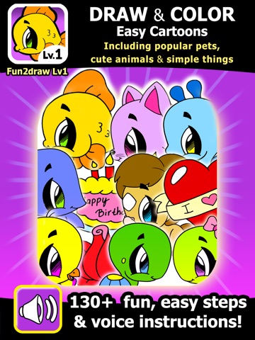 Designed by Canadian artist and Fun2draw creator Mei Yu, Fun2draw Lv1 offers super easy step-by-step drawing & coloring skills to turn simple shapes into beautiful, exciting cartoons, pets, and animals! Learn awesome tips & tricks from this cartoon art instructor to create your own cartoons in no time!