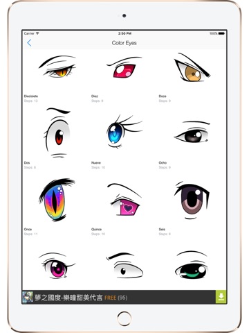 * Draw Anime Eyes - Cutest Eyes has collected a lot of various lessons. You can find any eyes which you want in Draw Anime Eyes - Cutest Eyes. All of them is here.