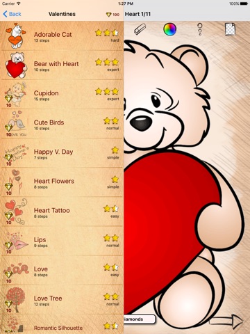 Every lesson of our drawing app has its own level. So it will be interesting for everyone, both for kids and adults. You will find various Valentines here!