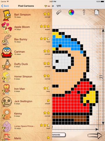 After installing Draw and Coloring Pixel Cartoons Characters from cartoons on your gadget, you’ll need to choose an interesting pattern for yourself. Then just repeat the instructions step-by-step. So the image will be created gradually. You can draw anywhere and on anything: on the school board, paper, window glass and even on the wall.