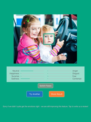 To be noticed, to have the best results, photos should be frontal and near-frontal faces. Emotions are experimental and not always accurate.