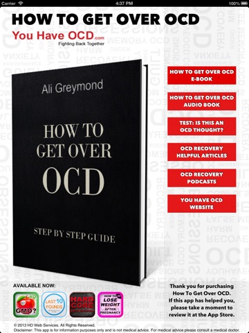 This app contains a How To Get Over OCD E-book and audio version of the same book read by the author Ali Greymond. It also contains podcasts and articles on getting over OCD.