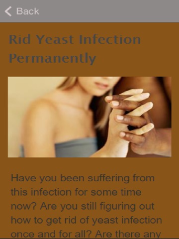 How To Get Rid Of A Yeast Infection is an app that includes some helpful information on how to get rid of a yeast infection.