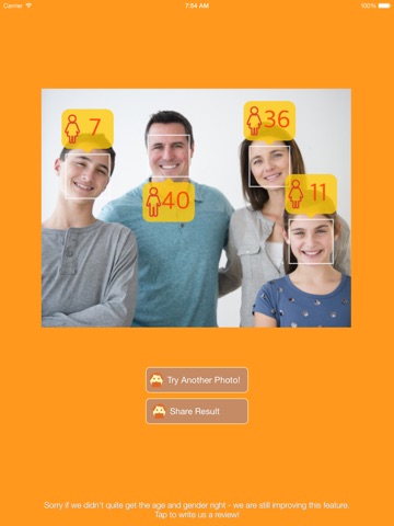 To have the best results, photos should be frontal and near-frontal faces. Age and gender classification are experimental and not always accurate.