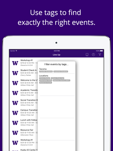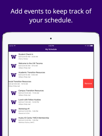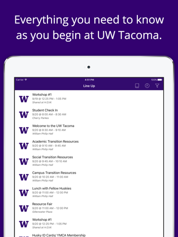 Full Description: Welcome to the University of Washington -Tacoma! The UW Tacoma orientation app is your one-stop location for Husky Orientation Week. Navigate your experience and access important transition information to campus and resources.