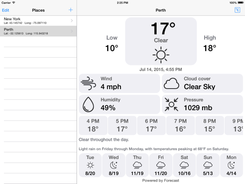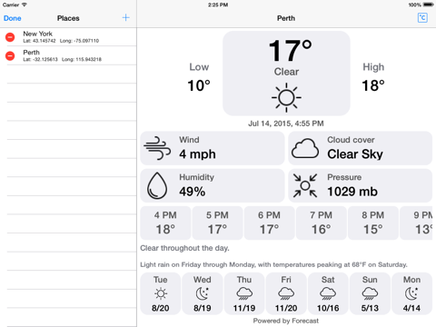 - High and low temperature for next 7 Days.