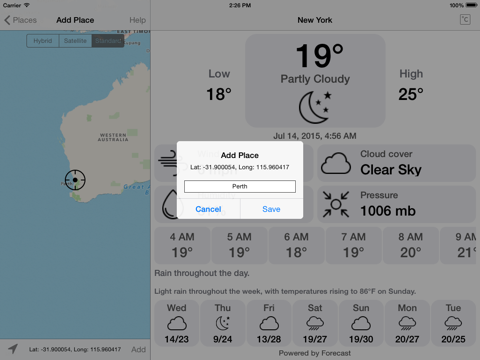 - Just click place to show weather any time.