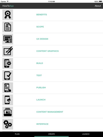 The HowToApp is an info app created by 2pi Software. It guides you through the various issues and considerations involved in app production. This information can be useful whether you are a buisness representative, project manager, startup founder, or just an interested person with a great app idea.
