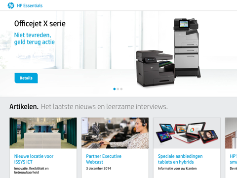 Naast informatie over alle producten, bevat de HP Essentials ook elke maand interessante interviews met specialisten op alle mogelijke gebieden. Samen met het nieuws over de producten van HP en de maandelijkse aanbiedingen vindt u deze terug in de HP Essentials app.