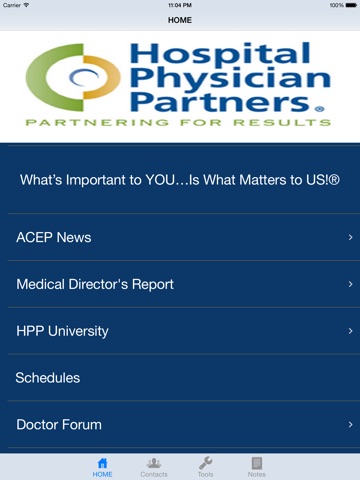 App designed for Hospital Physician Partners Medical Directors to organize information.