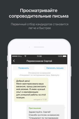— Общайтесь в чате, звоните прямо в приложении и договаривайтесь о собеседовании и других деталях трудоустройства