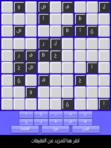 In each puzzle you will be given 9x9 cells with some filled and some empty and you will be given 9 letters to choose from, the challenge is to fill each cell with one of the given arabic letters in a way that a letter appears only once in each row, each column and each 3x3 block.
