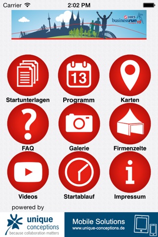 Die App zum HRS BusinessRun Cologne liefert wichtige Informationen rund um den größten Firmenlauf in NRW. Alles Wissenswerte zu den Startunterlagen, zum Veranstaltungsgelände, zur Strecke durch den Stadtwald, das BusinessRun-Village auf den Vorwiesen und der AfterRun-Party kompakt auf Ihrem iPhone. Zudem finden Sie hier am Tag nach der Veranstaltung die Veranstaltungs-Bilder, die Sie ganz einfach in Ihren sozialen Netzwerken teilen können.