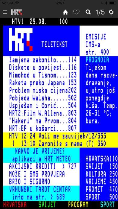 HRT Teletext is an application providing access to HTV’s Teletext pages via mobile and tablet devices. It features a hybrid display, combining emulation of the standard display and Teletext pages navigation typical for TV sets and use of modern and advanced navigation and presentation features of mobile platforms and their native user interface. Application use requires internet connection and enabled data traffic.