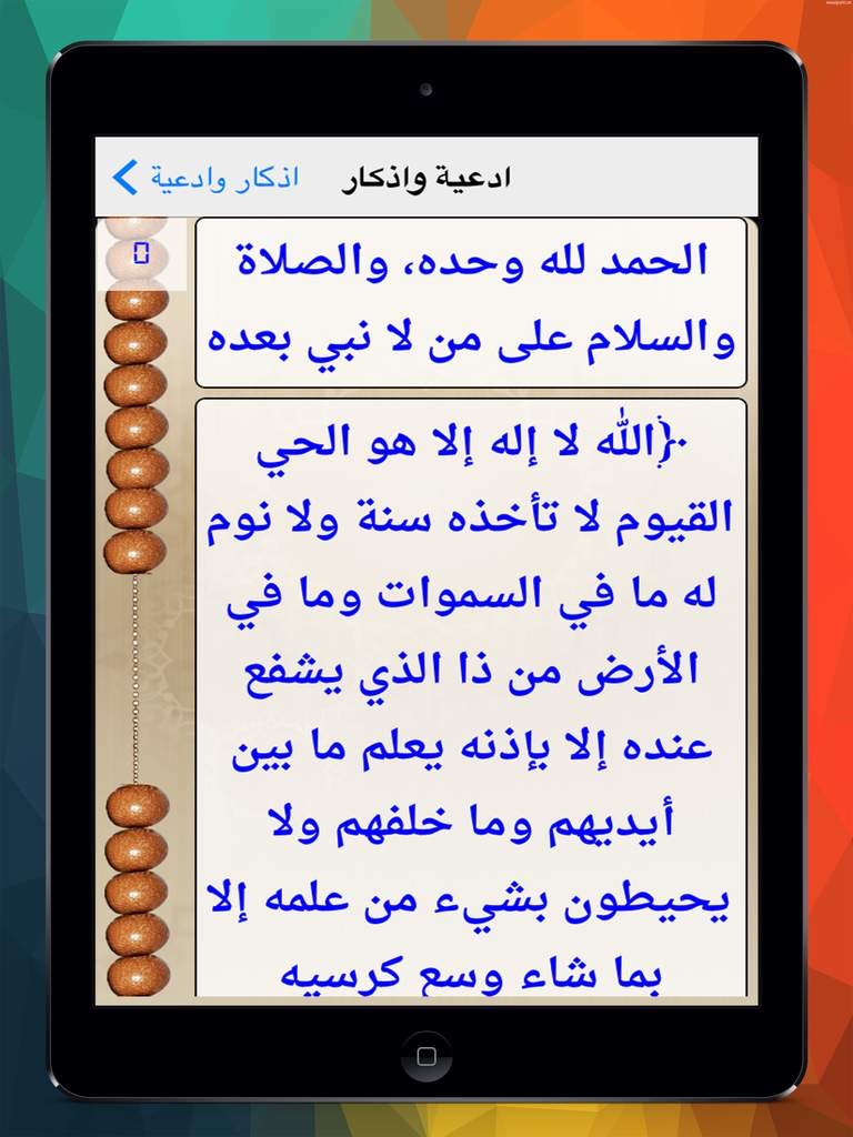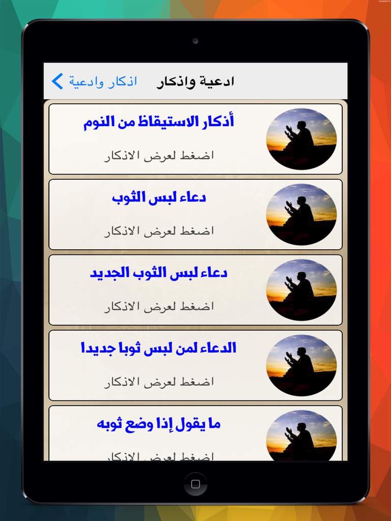 - عرض (اذكار الصباح والمساء – اذكار الصلاة – اذكار المسجد – اذكار النوم – اذكار الطعام – اذكار النوم – اذكار السفر – اذكار الحج والعمرة – اذكار الوضوء – اذكار المنزل – اذكار الخلاء) مع كثير من الاذكار المتنوعة الاخرى)