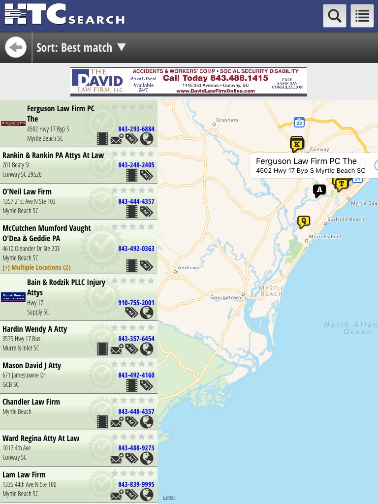 HTC offers speech recognition to make finding a listing fast and easy. Entering a simple search term like “Plumbing Contractors” using the standard iPhone® touch interface can take well over 15 keystrokes. With speech recognition, you can simply push a button and speak your search query – thus greatly reducing the number of steps required to find a local business.