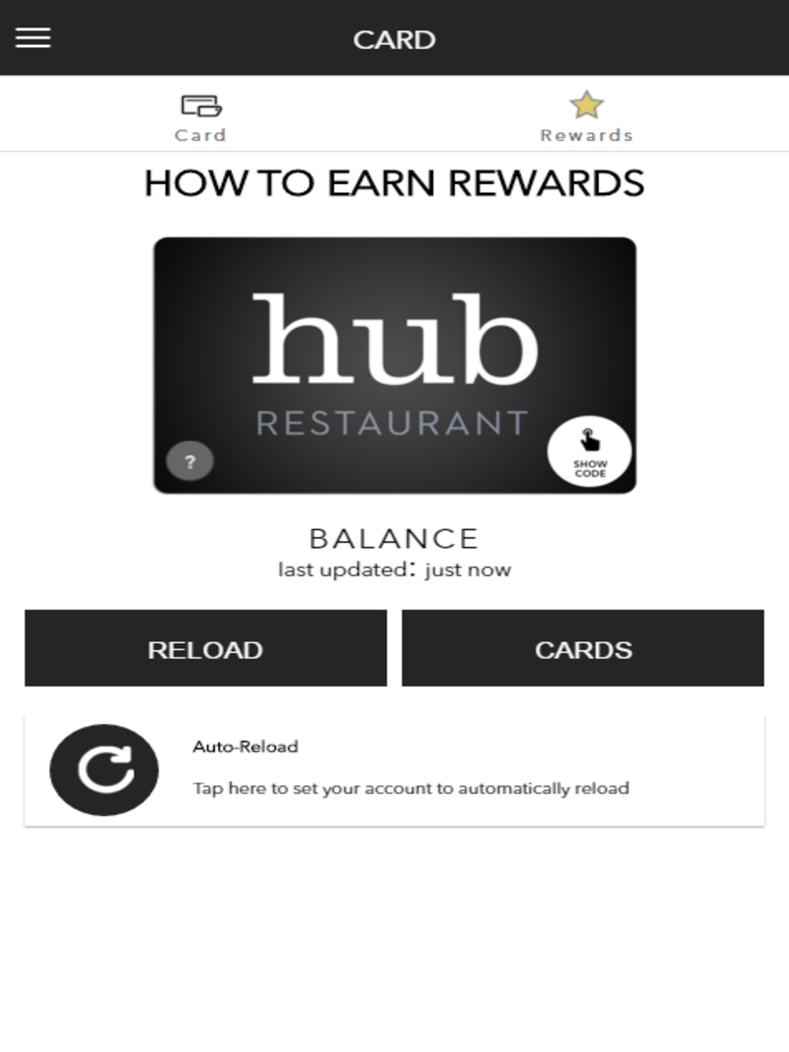 With this app you can add money to your Hub Restaurant account, set up auto-reload of your account, view transaction history and follow your rewards progress.