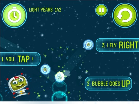 2. TAP when Hubble (little spaceship) is above Bubble. They bounce, we fly.