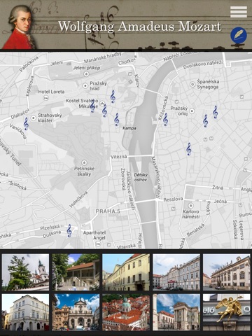 Aplikace Vám přiblíží bohaté hudební dědictví našeho hlavního města. Projděte si místa, kde žili a tvořili skladatelé jako W.A. Mozart, Bedřich Smetana či Antonín Dvořák, přečtěte si jejich životní příběhy a zaposlouchejte se do jejich hudby v interpretaci předních českých hudebníků a hudebních těles.