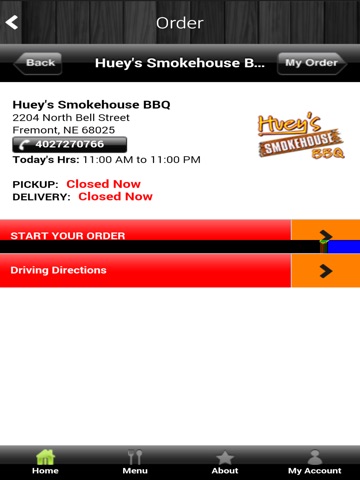 Get Hueys Smokehouse BBQ’s amazing food now on the go! Download the Hueys Smokehouse BBQ mobile app and access our online ordering anytime, anywhere. Order your favorite dishes for pickup or delivery. Also find us on your favorite social media site and connect with us for coupons and exclusive promotions.