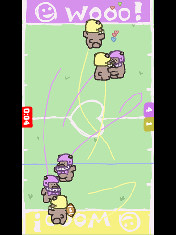 Players take turns positioning their teddy bears, then tracing out routes for them to run, then watching as the play unfolds.