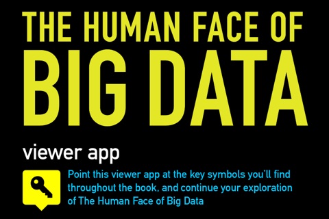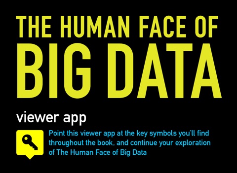 In order to use this app you need to have a copy of the large format illustrated book, The Human Face of Big Data by Rick Smolan & Jennifer Erwitt. Pointing your iPhone or iPad at certain images in the book which contain the yellow KEY symbol shown above will launch videos from the web allowing you to learn more about that specific story.