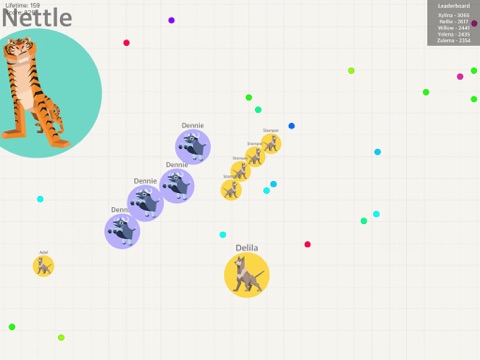 Welcome to Hungry Dot Stampede. You and all the other real players are cute pets and you must eat animals smaller than you and avoid the ones larger than you.