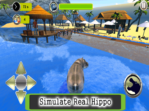 Are you prepared? The best things you can do while simulating a real hippopotamus. Attack people on the beach. These heinous hippopotami can strike from anywhere, shaking their massive maws at you!