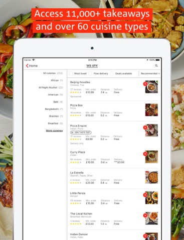 - Special offers and deals at thousands of takeaways, all highlighted in the app.