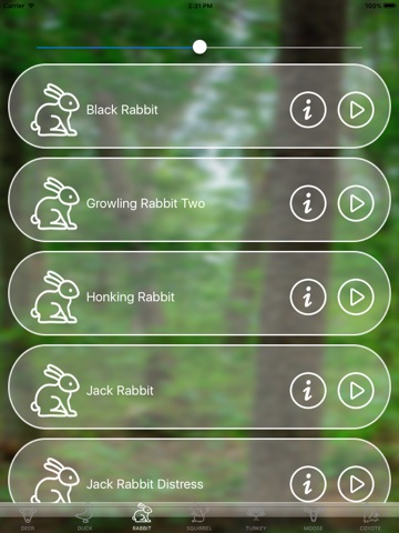 Now Hunting of Deer, Moose, Whitetail, Duck, Squirrel, Rabbit, Turkey, Coyote is no more difficult and expensive, just install the application and learn how to hunt these animals with the help of these high quality sounds and information about these sounds.