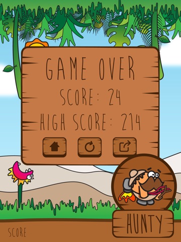 Use your finger on the screen and make the Hunty Hunter keep flying, guide him through the lianas and carnivorous plants and overcome as many obstacles as you can to be the King of the Hunty Hunter!