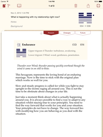 Everyone needs guidance throughout their life. But in todays busy world, the usual sources (family, friends, church, etc.) may not always be on hand to help. This is where The I Ching (the book of changes) can be a useful source of comfort and advice that is always available. The Hurns I Ching app makes it more portable and available than ever before.