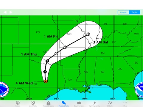 Si quelque chose est important en matière de tracking des tempêtes et cyclones, cest bien davoir des cartes et des prévisions à jour. Ce nest la cas ici. Exemple ? Le 1 août à 16 h locale je reçois la carte dhier soir et des carte de trajectoire non datées qui sont manifestement encore plus anciennes... Mieux vaut aller directement sur le site du NHC dont cette application se veut être une synthèse... un peu trop tardive
