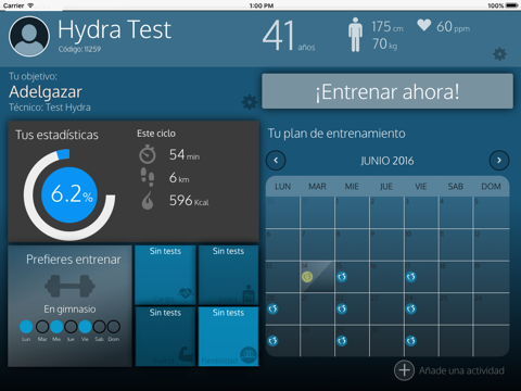 Aplicación de prescripción de entrenamientos para centros Hydra.