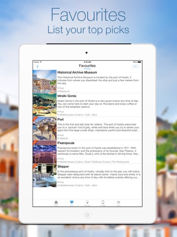 HYDRA by GREEKGUIDE.COM is completely free of charge and all the information barring weather, navigation and currency conversions is accessible offline. The ability to use the app without the need for internet access is particularly useful for visitors from abroad who wont incur roaming charges.