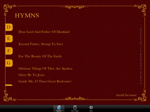 Unlike other similar applications, this Hymn Book App includes piano backing tracks for all 50 Hymns. So, if you want to practice these at home, or in a group, you can sing along whilst browsing the music and words in this nicely presented volume.
