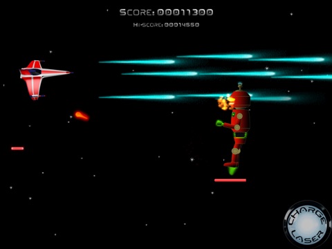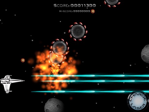 Your ship is controlled by tilting your device and you fire your laser by tapping anywhere on the screen. Tip: for rapid firing try tapping by alternating between your index and middle finger. You can charge your laser for a super burst shot by doing a tap and hold. You’ll hear the laser charging up.