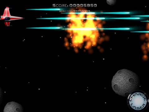 Your ship is controlled by touching and dragging on the screen. Whilst you’re touching the screen your ship will auto-fire (so you don’t have to, yay!). If you want a super burst shot then tap and hold the ‘Charge Laser’ button. This will take out even the biggest asteroid in a single shot…we think. Let us know how that works out for you.
