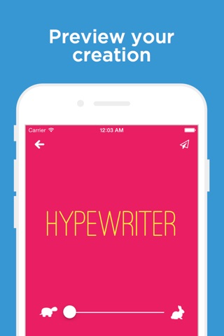 By using Hypewriter you can send messages that are simply more awesome. Write what you have to say into Hypewriter and it turns your ideas into an animated GIF so you can express yourself in entirely new ways. Use customizable text and fonts, change the text and background colors, vary the speed, and be sure to use lots of emojis!
