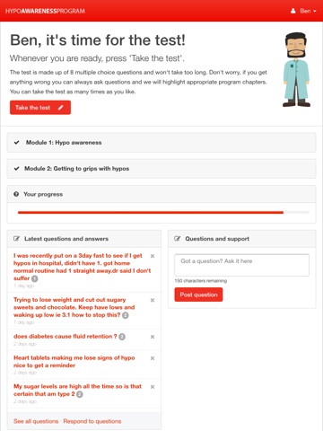 The Hypo Awareness Program is a completely free education course, focused on improving your knowledge of hypo symptoms. You read through the modules - all written by Benedict, our resident expert who has had type 1 diabetes for 22 years (since the age of 11). Along the way, you can help other users by asking and answering questions.