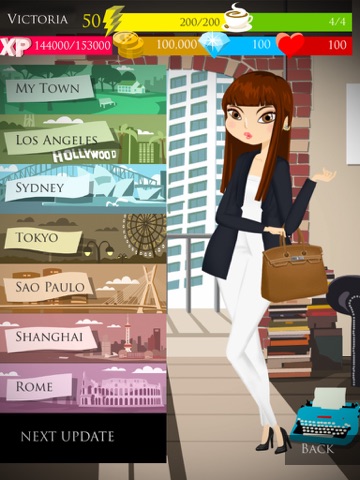 - 7 different cities to travel and complete careers: My Town, Los Angeles, Sydney, Tokyo, Sao Paulo, Shanghai and Rome.