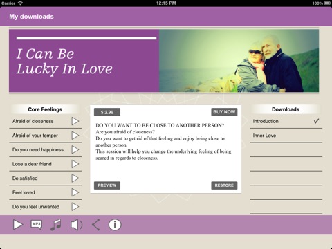 There follows a free session called "inner love" with your download. You can later buy other sessions directly from the program.
