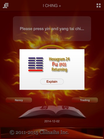 "I CHING +" is based on I Ching. "I Ching",also name YiJing, or Book of changes, is a Chinese oldest and most authoritative book, is a crystallization of Chinese wisdom. "I Ching" is the knowledge of life, the universe of truth, wisdom, culture, source of value. "I Ching" is a predictive science, decision science.