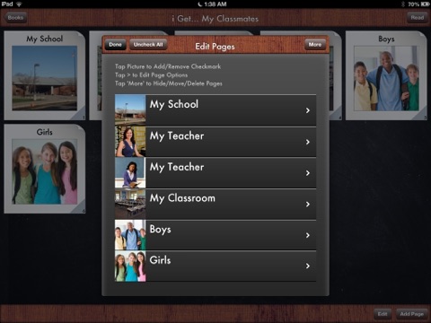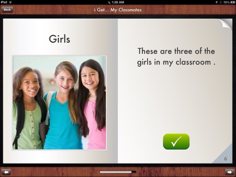 i Get… My Classmates Photo Books is an application offering picture, text and audio support to individuals learning about their classmates at school. Title, text statements and audio recording can be individualized for each picture allowing the app to be used for a variety of purposes, including receptive identification, expressive labeling.