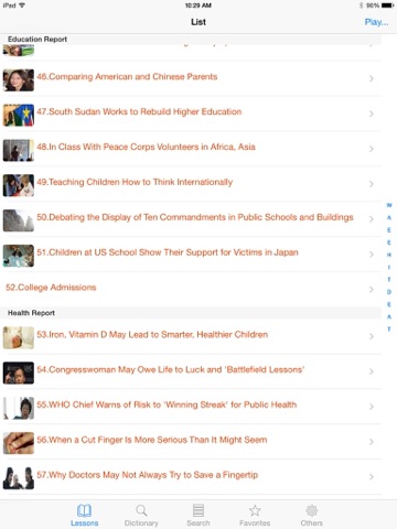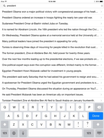 This app provides a selection of 97 special english news articles from VOA. All materials provided have very clear and high quality read back and all texts also very clear and includes high quality read back as well. It covers worldwide politics, economy, health, technology, environment and various major events and anecdotes.