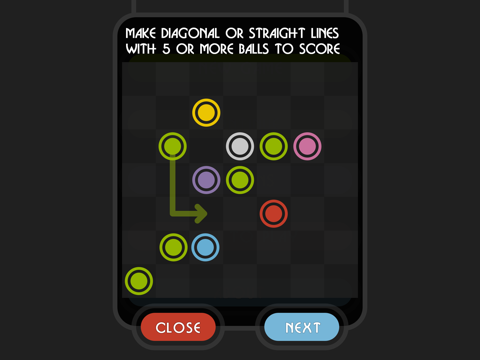 The goal is to break as many balls as possible in the board by matching at least five balls in a row. Three balls will appear after each non-breaking move. They will grow fast. Can you keep breaking them and continue scoring higher points?