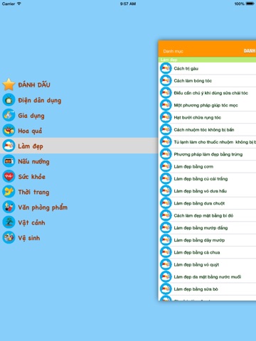 Ứng dụng bao gồm nhiều mẹo vặt trong cuộc sống được phân loại theo các lĩnh vực: