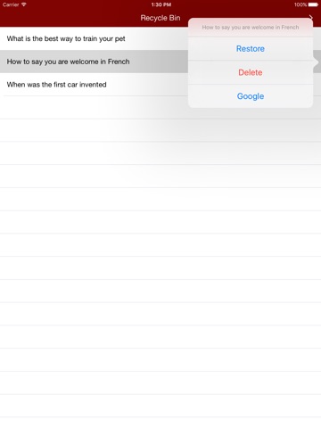 This app is useful when you want to remember to look something up later. You can type in your question, and later, when you are ready, all you have to do is tap the blue button next to you question, and the app will open Safari and search your question for you. The app also makes use of iCloud synchronisation.