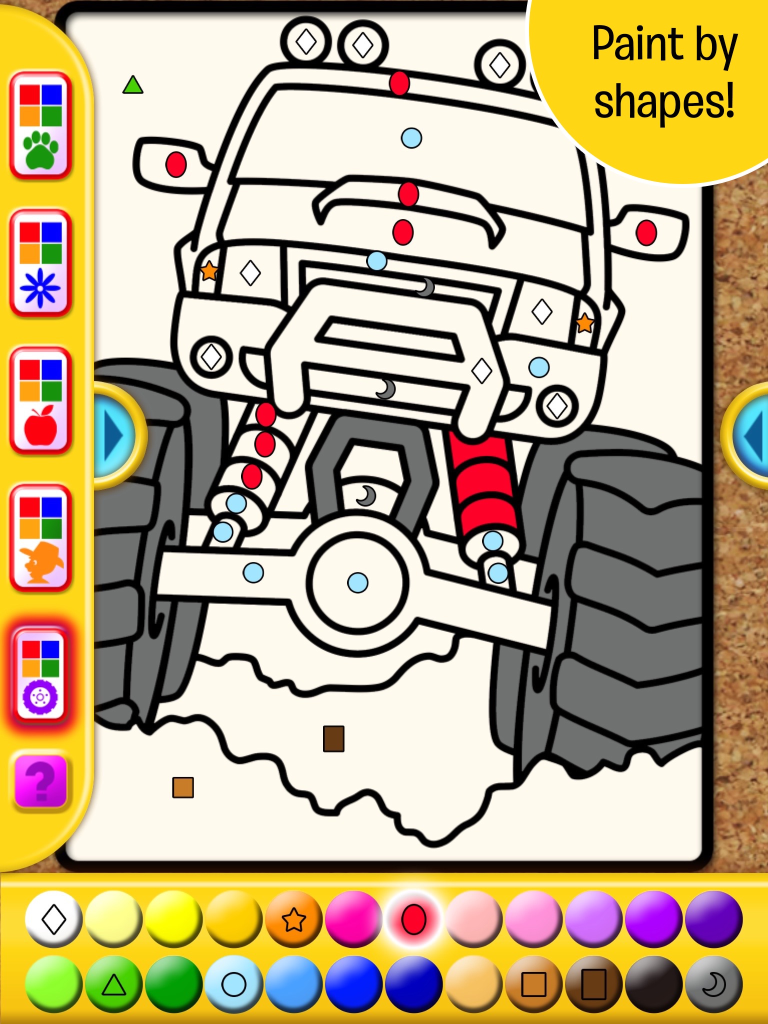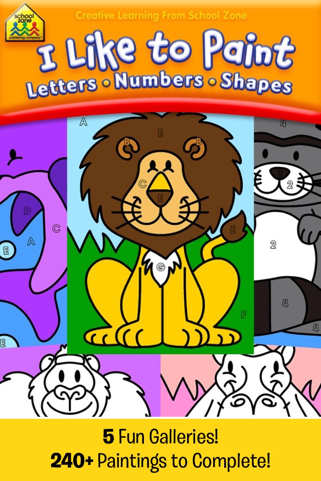 Give your kids an app to celebrate their creativity while they learn letters, shapes and numbers! This I Like to Paint app from School Zone, delivers big learning fun in rainbow colors. Preschoolers and kindergarteners can choose a picture to “paint” from one of five image galleries: Mammals, Nature, Favorite Foods, Fun Characters, and Things That Go, each with 16 pictures. Pick a monster truck, a prancing pony, or bird’s nest. Then select Paint by Letters, Paint by Numbers, or Paint by Shapes. It’s easy! Just touch the color displaying a number, letter, or shape inside it, and then touch the image area with the matching symbol to paint it. Following this pattern throughout the picture, when it’s complete, your child will delight in seeing sparkles and hearing, “You are an amazing artist!” Incorrect moves will result in “almost” or “try again” feedback. Kids can save all the images in each gallery, in all three modes, allowing storage of up to 320 pictures. Little artists can also choose the smiley face to just let their creativity go wild, using any colors they choose. Even then they hear the name pronounced for each color selected. That helps reinforce colors and distinguishes between light and dark shades. Scroll back and forth between gallery images with ease. To spritz away the filled-in colors and try again, touch the spray bottle icon. Like the final result? Share it with Grandma or others by Facebook or e-mail without even leaving the app.
