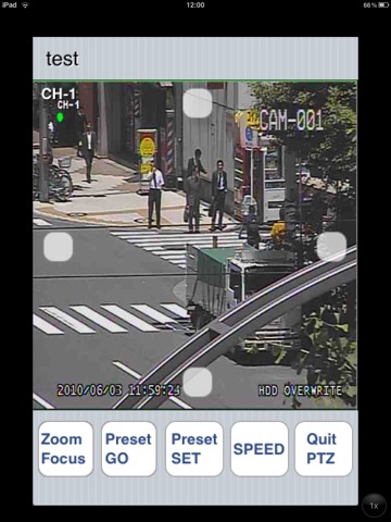 3. PTZ screen : Control pan, tilt and zoom of PTZ camera remotely.